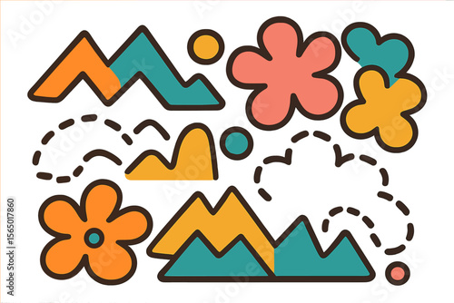 abstract, geometric, nature, modern, flat, colourful, shape, mountain, flower, playful, vibrant, design, decor, art, creative, trendy, dynamic, aesthetic, pattern, contemporary, illustration, graphic, element, decoration, visual, artistic, bright, unique, composition, layout