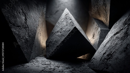 abstract, geometric, grey, block, stone, texture, dark, light, space, beam, shadow, dimension, cube, rough, surface, architecture, composition, shape, minimalist, modern, perspective, depth, interior, design, construction, material, concrete, structure, angular, corner, form, pattern, art, artwork, artistic, background, element, graphic, studio, scene, illustration, rendering, virtual, digital, complex, solid