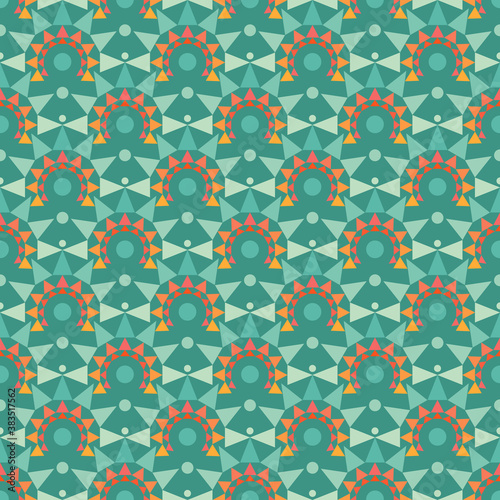 pattern, vector, background, vintage, seamless, geometric, wallpaper, abstract, decor, circle, illustration, element, style, fashion, print, fabric, ornament, red, orange, green, turquoise, motif, textile, graphic, tile, trendy, mosaic, ornamental, paper, ornate, curl, dot, repetition, drawn, symmetry, light, netting, repeating, star, yellow, interior, twirling, repeat, delicate, wall, colours, card, lace