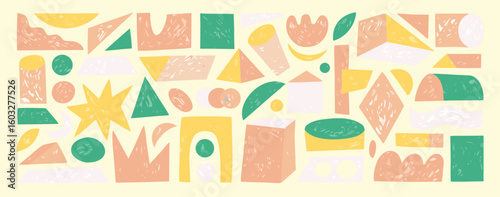 abstract, geometric, shape, pattern, design, pastel, colours, modern, art, style, background, illustration, triangle, circle, square, rectangle, texture, hand-drawn, organic, minimal, decorative, template, banner, wallpaper, poster, print, surface, textile, fabric, scrapbook, collage, element, graphic, artistic, creative, trendy, aesthetic, vintage, retro, simple, contemporary, artwork, composition, ornament, vignetting, doodle, drawing, colourful