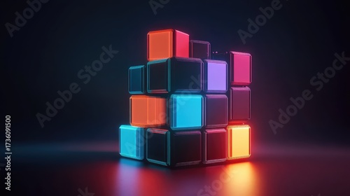 technology, modern, futuristic, neon, datum, network, abstract, digital, light, artificial, science, geometric, education, three-dimensional, block, business, glowing, virtual, cube, programming, colourful, background, intelligence, art, connection, design, dark, shape, complex, pattern, render, vibrant, innovation, development, imagination, game, concept, challenge, entertainment, creativity, bright, illumination, solution, puzzle, illusion, symmetry, optical