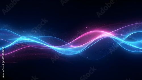 Abstract glowing neon light waves in blue and pink, futuristic digital energy flow background with smooth curves, vibrant spectrum, sci-fi motion design, modern technology wallpaper illustration