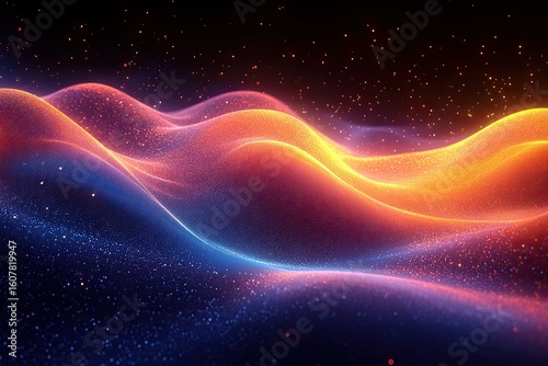 abstract, particle, wave, glowing, gradient, blue, orange, dark, starry, background, digital, art, dynamic, flow, energy, movement, texture, light, shadow, futuristic, modern, design, illustration, wallpaper, space, cosmos, universe, nebula, sparkle, glistering, vibrant, colourful, smooth, surface, pattern, technology, science, fantasy, dreamlike, aethereal, magical, cosmic, stellar, celestial, aurora, borealis, aurora borealis
