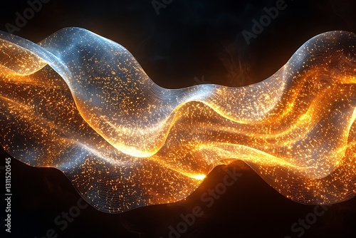wave, energy, flow, light, particle, abstract, glowing, gold, blue, fire, ice, motion, dynamic, sparkle, shimmer, shine, glistering, cosmic, nebula, galaxy, space, futuristic, technology, digital, design, background, texture, pattern, illustration, art, graphic, vibrant, bright, dark, elegant
