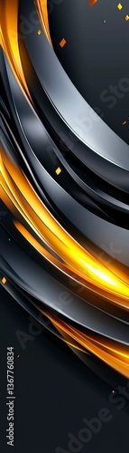 abstract, background, black, gold, yellow, orange, curve, swirl, line, stripes, metallic, shiny, glossy, texture, pattern, design, art, modern, contemporary, elegant, luxury, futuristic, technology, digital, graphic, wallpaper, illustration, vibrant, dynamic, energy, motion, movement, flow, smooth, sleek, dark, light, contrast, bright, style, trend, template, cover, website, banner, booklet