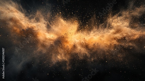 Abstract golden explosion forming delicate patterns, soft glow on black