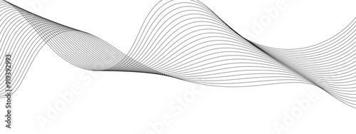 Abstract Gray wavy business and banner curve line background. Digital future technology concept. Line art striped graphic template, banner background. Vector illustration.