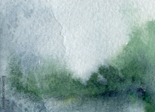 Abstract green and blue watercolor painting on textured paper. Soft wash of color with natural pigment bleeding. Artistic background for design project or creative digital stationary.