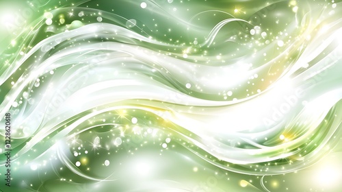 Abstract Green and White Wave Design with Sparkling Lights