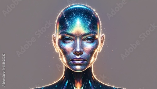 avatar, digital, holographic, glowing, kaleidoscopic, futuristic, cyber, surreal, vibrant, radiant, face, portrait, aesthetic, colourful, abstract, entity, modern, bright, technology, art