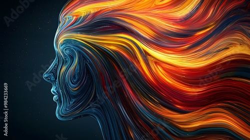 abstract, human, face, portrait, profile, side, swirling, colours, colourful, vibrant, energy, motion, movement, dynamic, modern, contemporary, art, design, graphic, illustration, digital artwork, painting, line, curve, wave, texture, background, pattern, wallpaper, style, concept, idea, imagination, creativity, mind, thought, emotion, feeling, passion, power, intensity, beauty, aesthetic, abstract art, abstract background, swirl