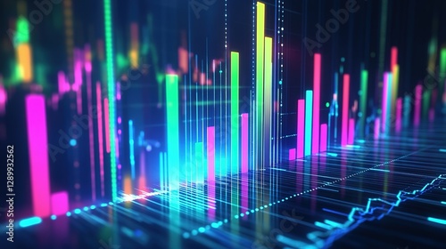 Abstract Illustration of Bright Neon Colored Data Visualization Graph