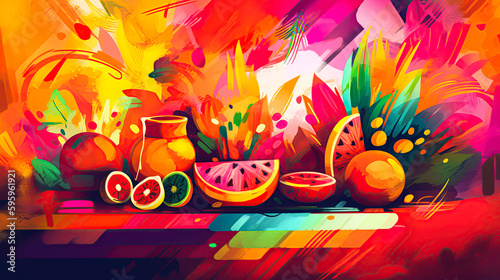 Abstract illustration of fruits and vegetables in mexican style. Generative Ai
