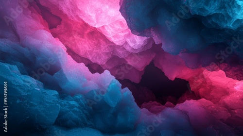 Abstract image featuring vibrant pink and blue clouds creating a surreal landscape. Ideal for backgrounds, wallpapers, and creative projects.