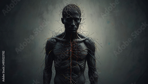 Abstract Image of figure of human being suffering from depression, trauma or mental disease, illustration , concept image, threads concept