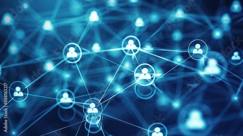 Abstract image of interconnected communication channels in marketing represented by digital icons
