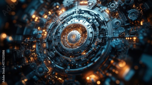 Abstract intricate machine core, futuristic technology, inner workings