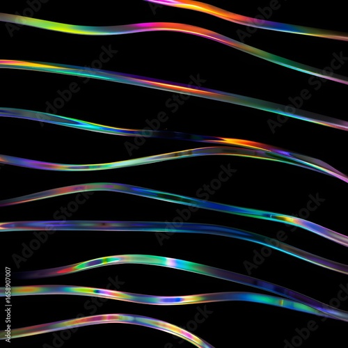 Abstract Iridescent Wavy Lines on Black Background