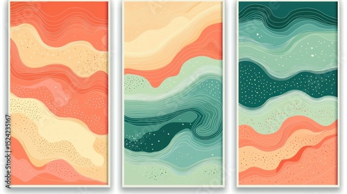 abstract, layered, wavy, form, coral, beige, teal, liquid, texture, pattern, colours, gradient, smooth, flowing, organic, dynamic, art, poster, print, design, modern, minimalist, contemporary, background, decor, wall, visual, composition, aesthetic, trendy, graphic, illustration, vibrant, subtile, pastel, gold, glistering, dot, delicate, decoration, poster