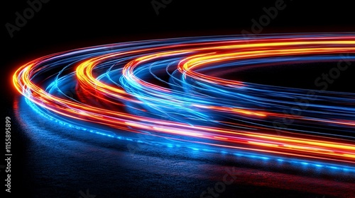 light, trail, abstract, motion, circular, blue, orange, speed, energy, technology, futuristic, dynamic, swirl, curve, glow, bright, vibrant, fast, line, streak, pattern, design, background, texture, graphic, illustration, art, digital, modern, concept, science, innovation, power, flow, movement, wave, cosmic, night, dark, black, illumination, radiance, luminance, shine, sparkle, colourful, fiery