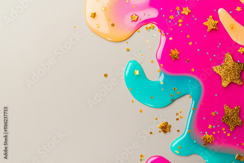 abstract liquid vibrant colors, flat lay, space for text