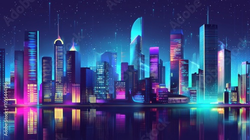 Abstract Modern Cityscape: A Panoramic 3D Illustration Journey