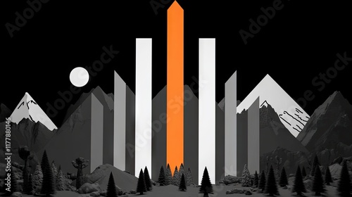 mountain, city, growth, abstract, night, landscape, scene, concept, design, digital, illustration, nature, urban, future, progress, graphic, creative, art, modern, minimalist, geometric, composition, sky, vertical, upward, trend, innovation, business, elevation, forward, structure, technology, creativity, background, minimal, symmetry, simplicity, trendy, inspiration, vision, visionary