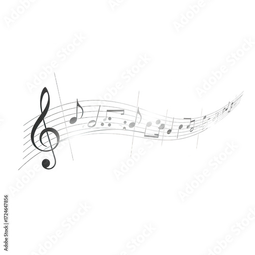 music, musical notes, treble clef, abstract, art, design, sound, melody, harmony, rythm, score, sheet music, notation, silver, shimmering, glowing, dynamic, creative, artistic, illustration, graphic, element, background, isolated, white, black