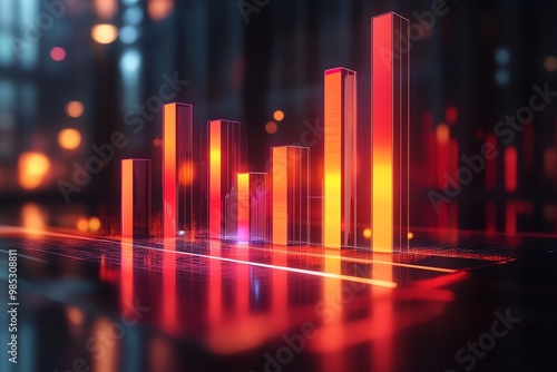 abstract, bar, bar, chart, city, datum, digital, glow, glowing, graphic, growth, light, neon, red, success, technology, trend