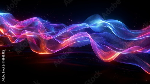 Abstract Neon Waveforms: Glowing Pink, Blue, and Orange Energetic Streams