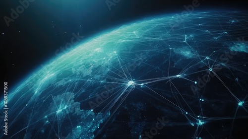 Abstract network connections over a blue earth, showcasing the spread of data in a global digital world.