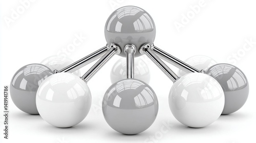 network, connection, sphere, three-dimensional, rendering, abstract, grey, white, metallic, teamwork, interconnection, technology, structure, system, glossy, reflective, illustration, model, digital, design, geometric, shape, object, bond, link, relationship, collaboration, oneness, communication, global, international, business, science, engineering, architecture, connectivity, interaction, growth, development, innovation, future, progress, concept, visualisation