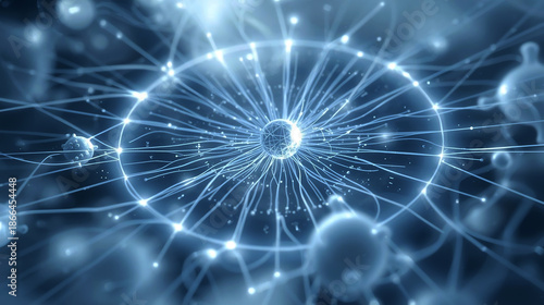 Abstract Neural Network Sphere with Artificial Intelligence Data Connections and Light Particles