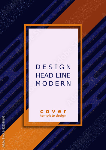 Abstract oblique geometric shapes, stripes, on a dark blue background. Bright colors, small particles. Frame, place for text. Universal template for cover design, business card, flyer.