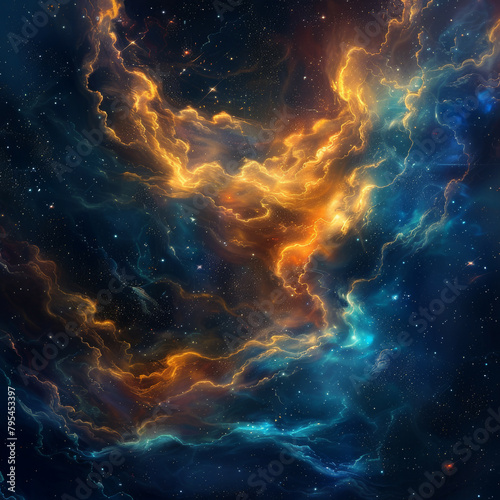 Abstract Orange-Blue Space Nebula - Cosmic Fusion