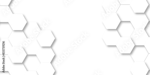 Abstract pattern with hexagonal white and gray technology line paper background. Hexagonal grid tile and mosaic structure mess cell. white and gray hexagon honeycomb geometric copy space.