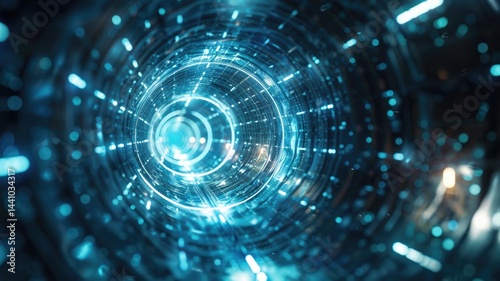 Abstract picture of blue light particle with digital technology style design connecting become dynamic of electric wave movement represent about flowing of data or structure of network system. AIG53.
