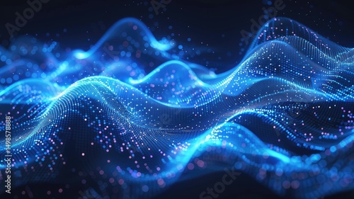 Abstract picture of neon light particle with digital technology style design connecting become dynamic of electric wave movement represent about flowing of data or structure of network system. AIG53.