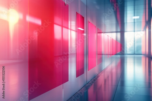pink, panel, modern, office, corridor, hallway, interior, architecture, wall, glasses, light, bright, contemporary, minimalist, space, clean, sleek, corporate, business, vibrant, glossy, smooth, hanging, display, signage, presentation