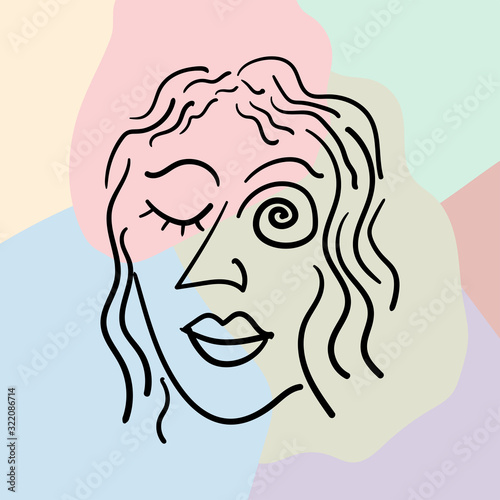 Abstract portrait of a woman with curls on a colored background. Modern vector illustration.