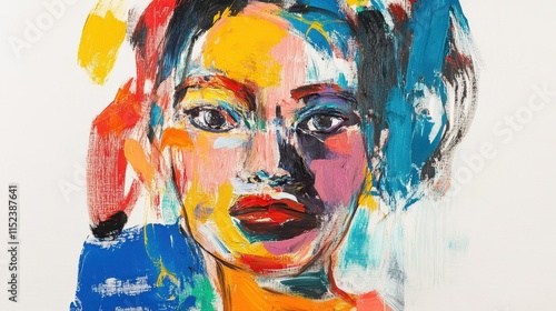 Abstract portrait painting depicting a woman with bold colors and brushstrokes