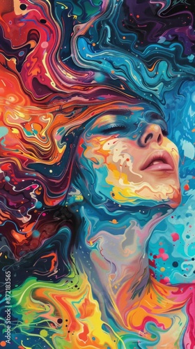 Abstract portrayal of a girl with vibrant colors swirling around her