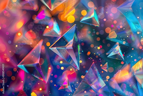 abstract, prism, triangle, iridescent, shimmering, high-coloured, colourful, vibrant, digital, illustration, dreamscape, geometric, shape, light, bokeh, background, pattern, texture, design, art, graphic, hallucinogen, fantasy, three-dimensional, render, neon, glowing, bright, sparkling, blue, purple, red, orange, yellow, pink, green, gradient, pattern, dynamic, abstract art, digital artwork