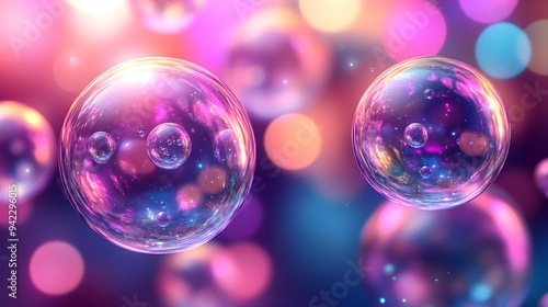 Abstract Purple and Pink Bubbles with Bokeh Background