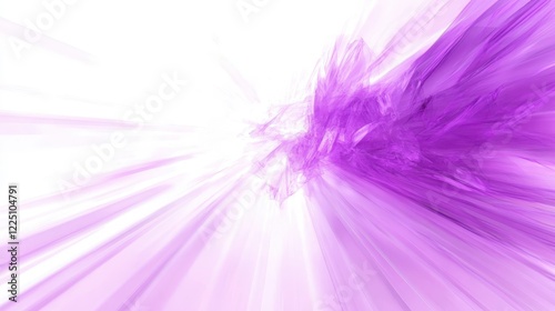 Abstract purple and white digital art with radiating lines and textured forms creating a dynamic and energetic composition. The image features a