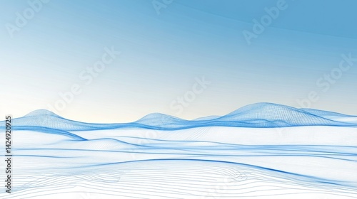 landscape, mountain, abstract, digital, design, blue, white, line, geometric, shape, texture, pattern, perspective, horizon, sky, light, colours, computer, generated, image, illustration, art, background, visual, representation, contemporary, modern, artistic, visualisation, rendering, elevation, contour, form, depth, view, smooth, delicate, lightness, detail, subtile, impression