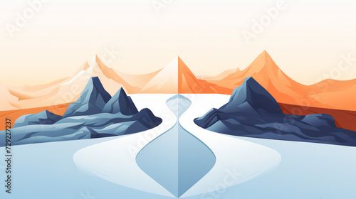 abstract, river, mountain, vale, landscape, flowing water, serene, nature, art, mountain chain, digital artwork, tranquil, scenery, natural beauty, vector, creative, wilderness, calm, peaceful, environment, travel, adventure, exploration, artistic, contemporary, modern art, stylised, peak, summit, environmental