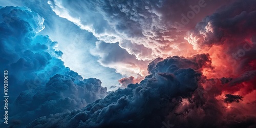 Abstract sci-fi background of blue and red fractal clouds, fractal, clouds, abstract, sci-fi, background, futuristic