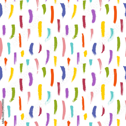 Abstract seamless pattern. Colorful brush strokes of colored paint isolated on white background.