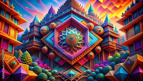 Abstract Shapes, Geometric Forms, Digital Art, Futuristic Design, Mystical Geometry
